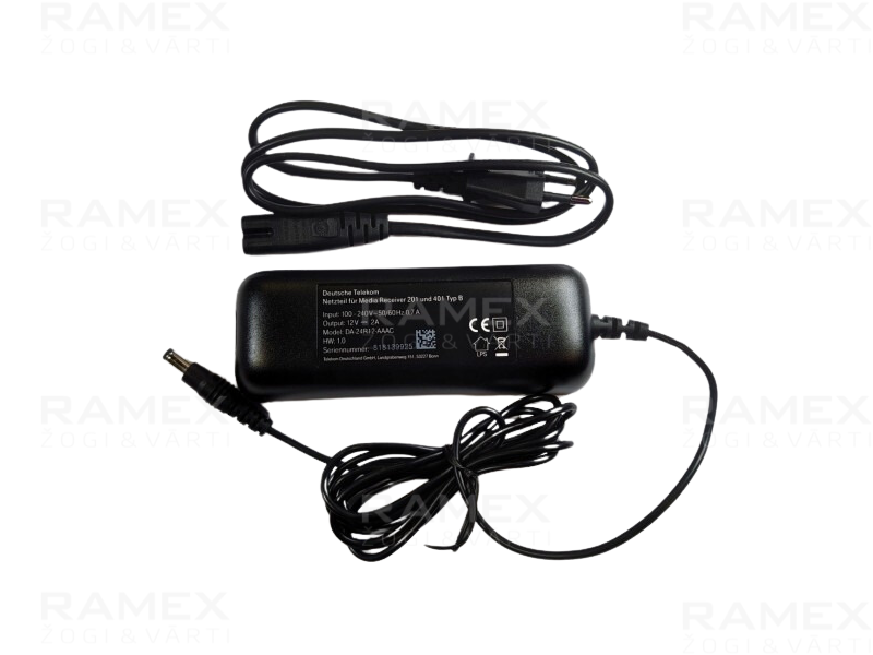 - Izejas spriegums: 12V – 2,0A – 24W