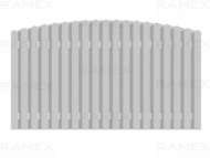 Augstas kvalitātes koka žoga posms VR-10 ar dubulto dēļu rindu un elegantu arkas dizainu, kur posma vidusdaļa pacelta par 120 mm. Šis risinājums nodrošina pilnīgu privātumu, izturību un dekoratīvu izskatu. Izgatavots no egles vai priedes, pieejams dažādās krāsās un izmēros pēc pasūtījuma.