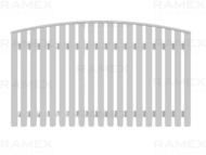Augstas kvalitātes koka žoga posms VR-3 ar elegantu arkas dizainu — posma vidusdaļa pacelta par 120 mm, veidojot vizuāli pievilcīgu un harmonisku nožogojumu. Izgatavots no izturīgiem egles vai priedes dēļiem, šis posms ir ideāls risinājums privātmāju, dārzu un citu teritoriju nožogošanai. Konstrukcija apvieno izturību, estētiku un individuālu pielāgošanu.
