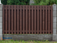 Augstas kvalitātes koka žoga posms VR-8 ar estētiski noapaļotiem dēļu galiem un dubulto dēļu rindu pilnīgai privātuma nodrošināšanai. Izgatavots no egles vai priedes, tas ir ideāls risinājums privātmāju, dārzu un citu teritoriju nožogošanai. Konstrukcija ir izturīga, vizuāli pievilcīga un pieejama dažādās krāsās un izmēros pēc pasūtījuma.