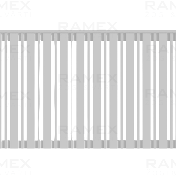 - Sprauga starp dēļiem: 50 mm (dubultā rinda, pilnībā nosedz spraugas; pielāgojama pēc vajadzības)