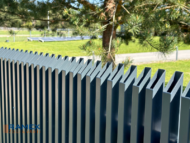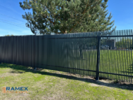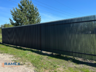 Tips: Vertikālu lamelu metāla žogs ar slīpu izvietojumu